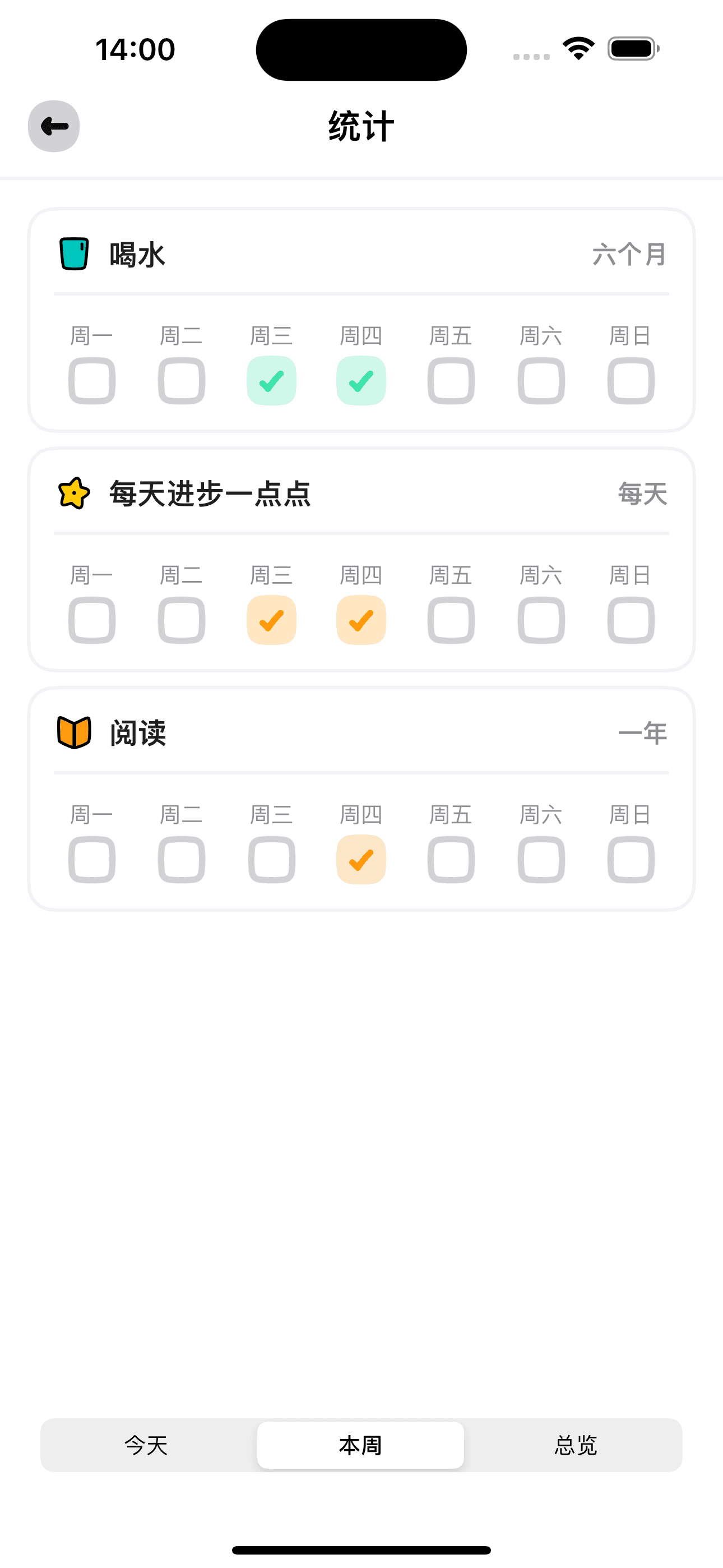 无论是喝水、锻炼,还是撸猫,【喵计划】目标打卡帮你记录每一次努力!只要打卡,成就感立刻满格!✨